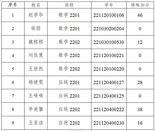 组织专家评审小组对申请特殊学术专长加分的学生经过了公开答辩和审核鉴定,现对审核鉴定的结果进行公示: