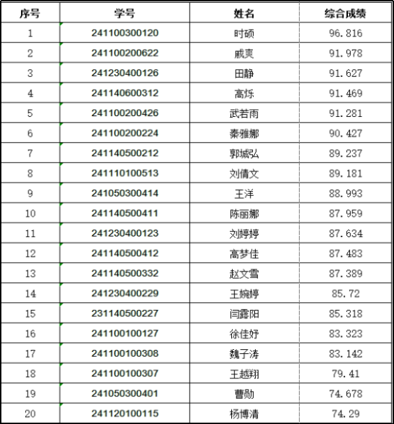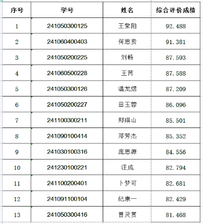组织面试,按照综合评价成绩排序,拟接收以下学生转入星空体育