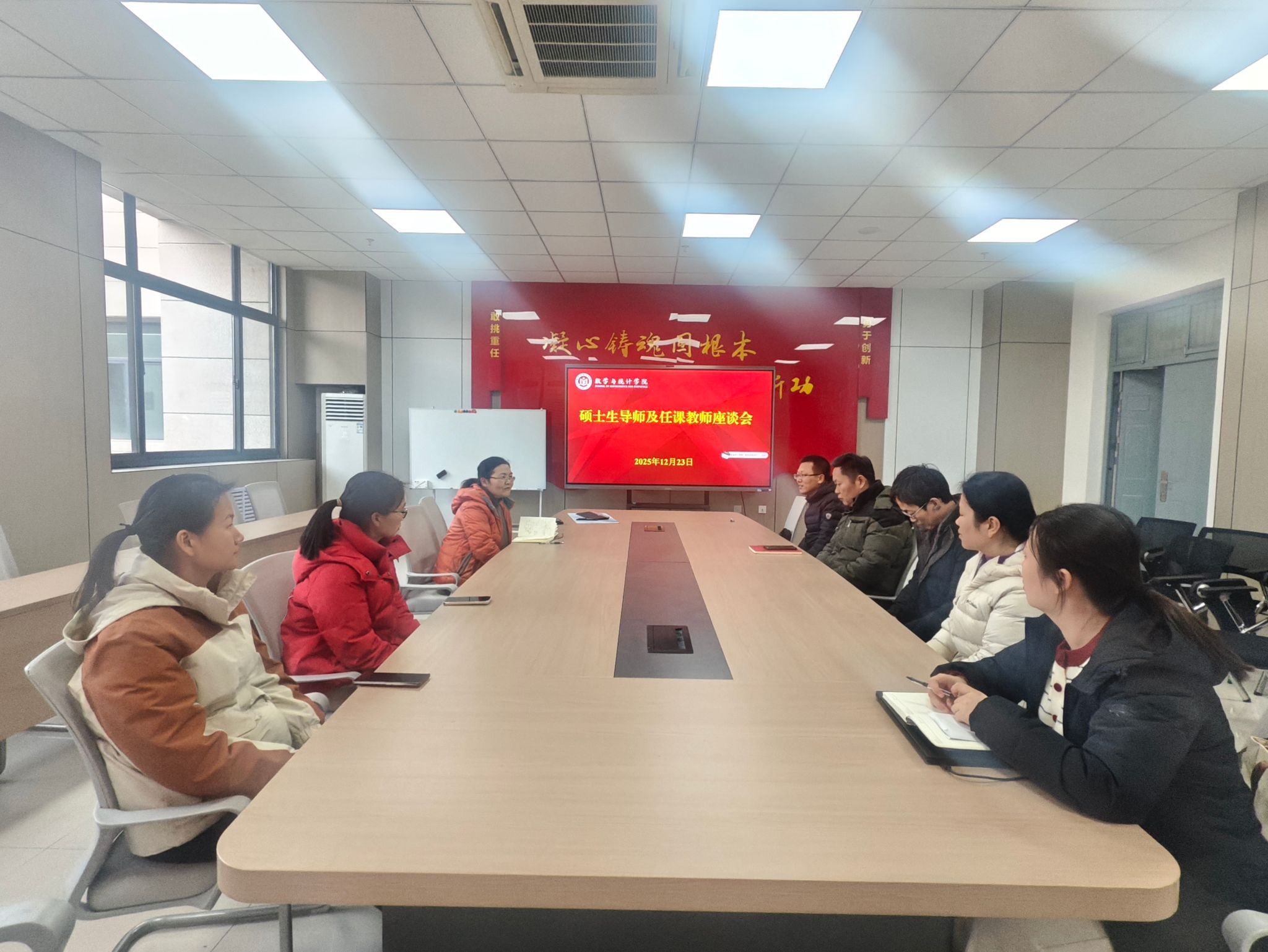 座谈会上,与会教师围绕数学学术型硕士与应用统计专业硕士培养方案实施情况、课程教学与科研训练及实践能力培养的协同衔接、导师指导责任落实以及研究生培养过程中存在的共性问题进行了深入交流。大家结合教学与指导实践,从课程体系优化、培养过程管理、学术能力与应用能力并重培养等方面展开讨论,并就进一步提升研究生培养质量提出了建设性意见和建议。