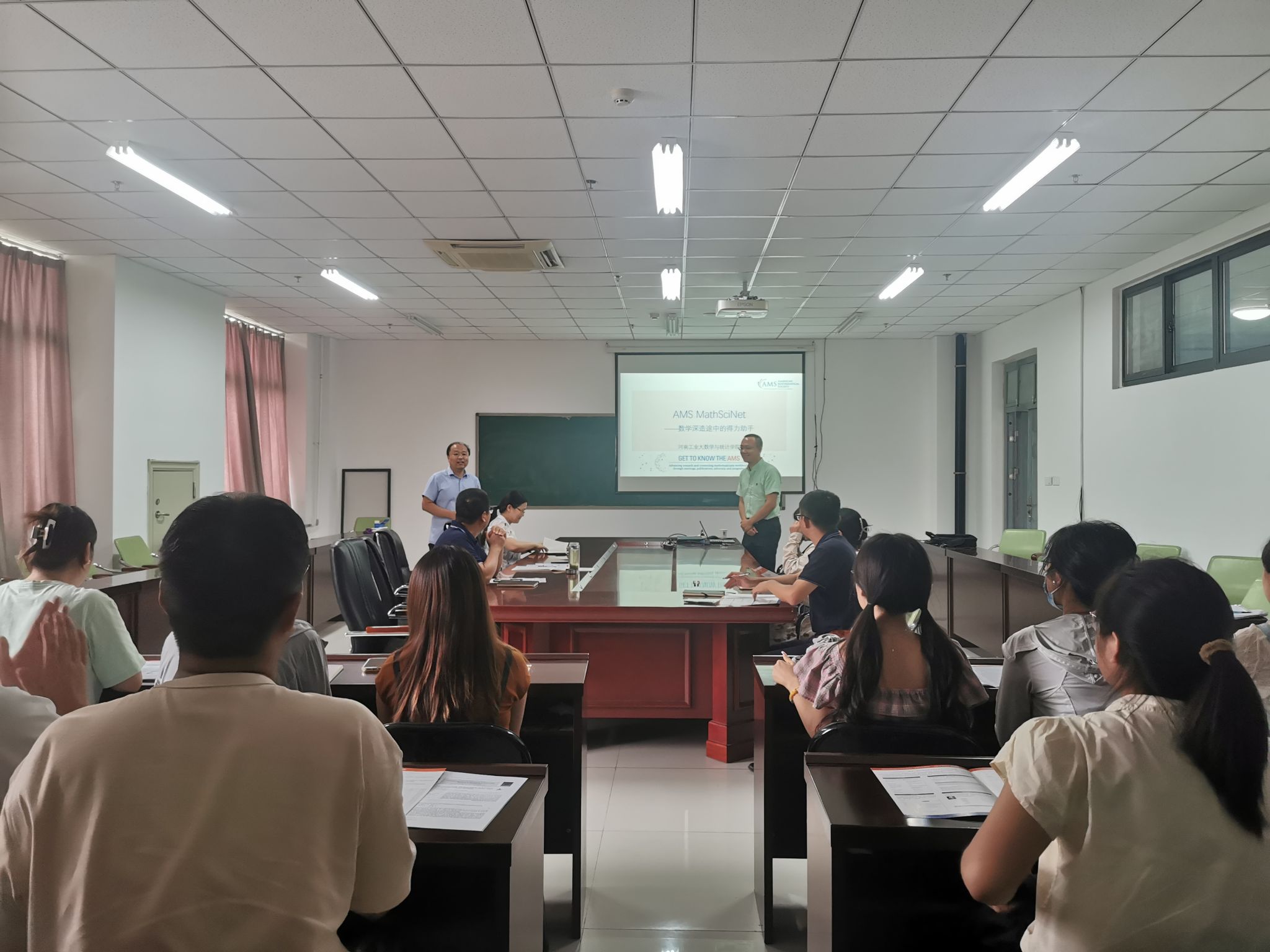 在惟德楼413会议室召开美国数学学会(AMS)MathSciNet数据库使用培训会,院长谷存昌,副院长曹建莉、肖留超,AMS数据库负责人陈正良,星空体育