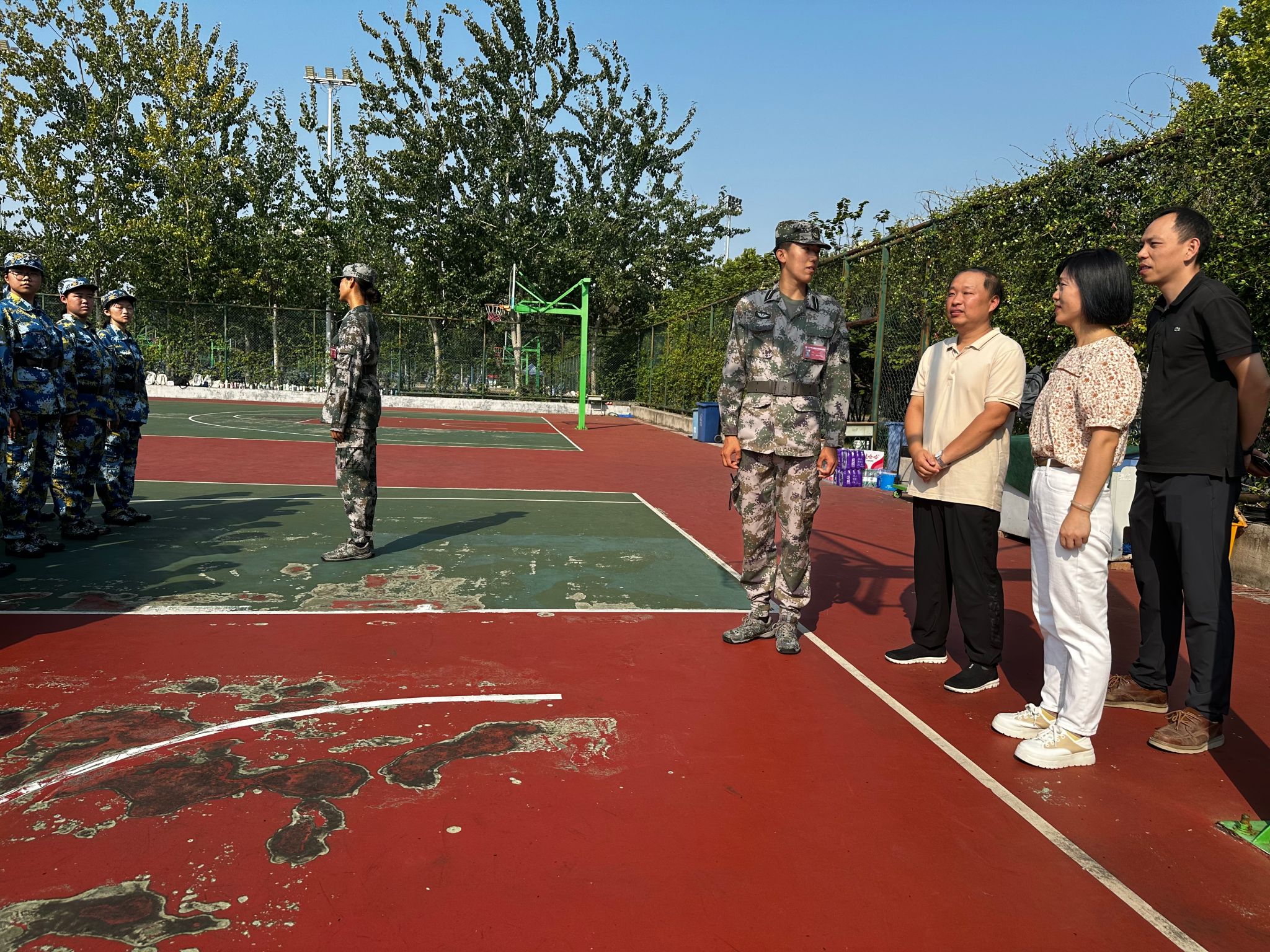 全体辅导员前往军训现场看望慰问2024级军训新生和教官。