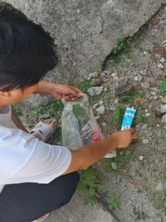队长带头手持镊子,小心翼翼地夹起污染性垃圾并分类处理,队员们紧随其后,俯身为乡村“除垢”。连续三天,他们顶着烈日,拎着垃圾袋穿梭在每条乡间小路,用汗水换来了道路的干净整洁。