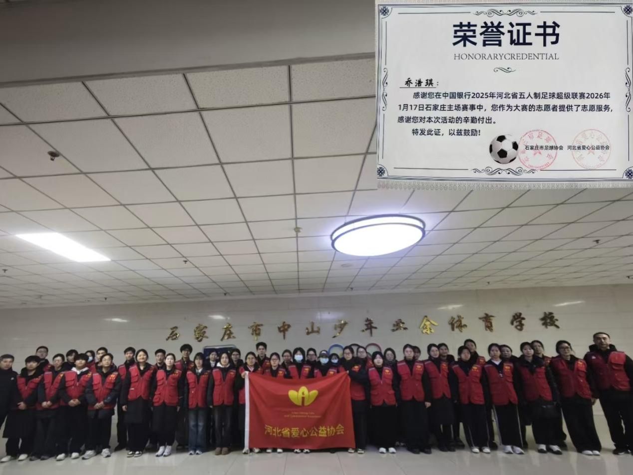2025级学生乔浩琪积极响应国家 “返家乡” 社会实践号召,于石家庄市中山体育馆参与 2025 年河北省五人制足球超级联赛石家庄赛区志愿服务,担任赛事引导员,以青春之力为家乡体育赛事保驾护航。