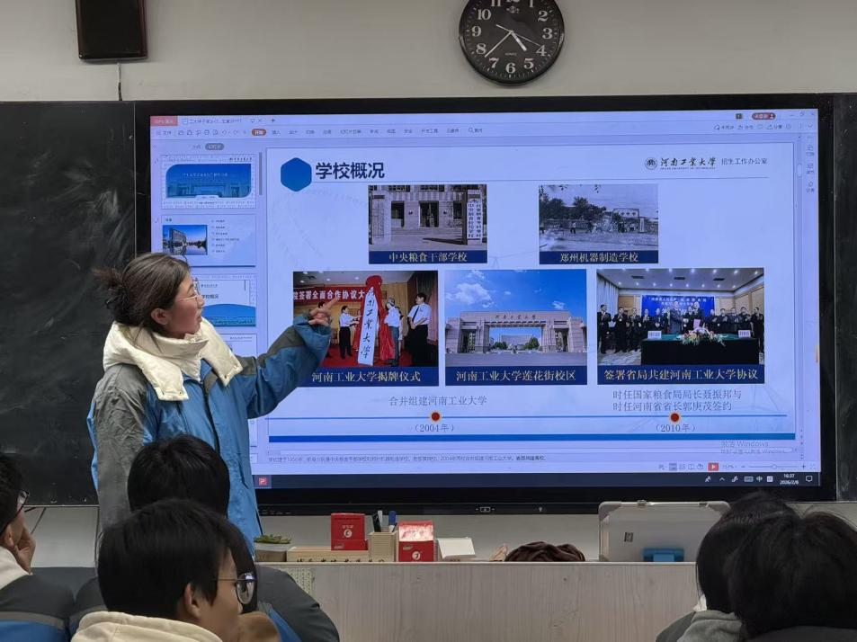 的核心办学特色,重点介绍了食品科学与工程、粮食工程、机械工程等“双一流”建设相关学科群,以及计算机科学与技术、土木工程、会计学等国家级一流本科专业的建设成果。通过分享学科领域的科研突破、校企合作项目、实习就业案例等,让学子们直观感受河工大在“粮食产后安全”“智能制造”等领域的行业优势与育人实力,帮助同学们清晰认知不同专业的发展前景。