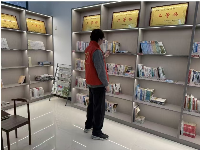 面对村委会阅览室书籍堆积、分类不明的现状,刘震东迅速制定“先清理、后整理、再清扫”的工作策略。在阅览室,他化身“知识管家”,对数千册书籍进行细致分类,初步划分为“政策法规”、“农业科技”等六大板块。他逐一擦拭书架,细心整理《曾国藩》、《觉醒年代》等重点书籍,让原本杂乱的阅览室变得井然有序,为村民借阅提供便利。